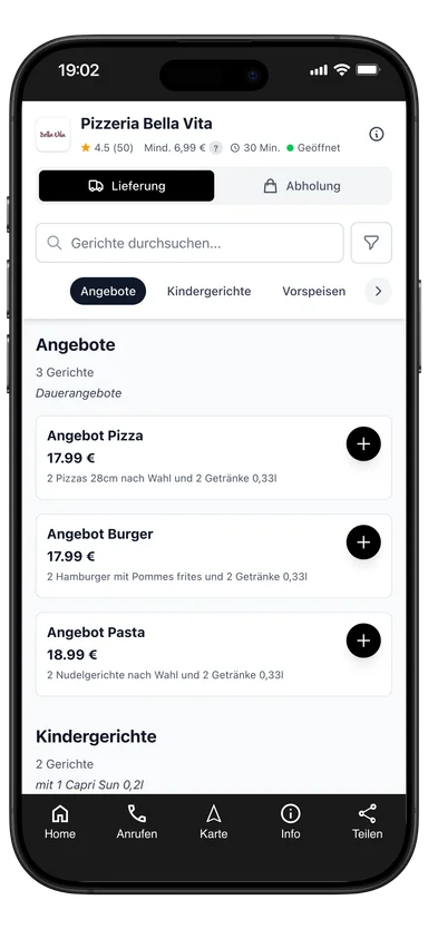 2 Pizzas 28cm nach Wahl und 2 Getränke 0,33l